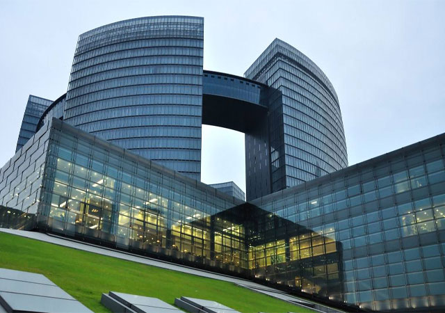 杭州市民中心是杭州市錢江新城的標(biāo)志性建筑,采用主樓與裙房適度分散的布局方式,市民中心雙塔高320米,建筑用地面積為18萬平方米。